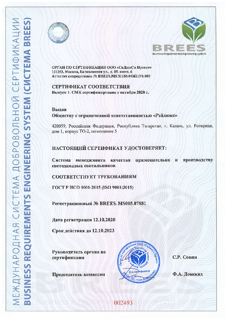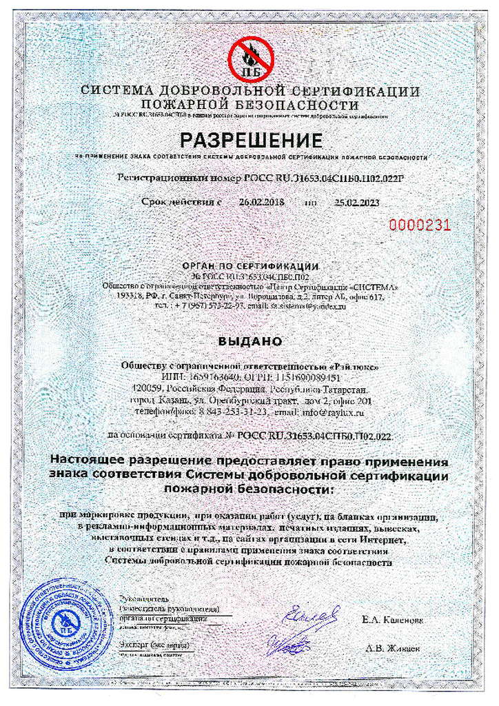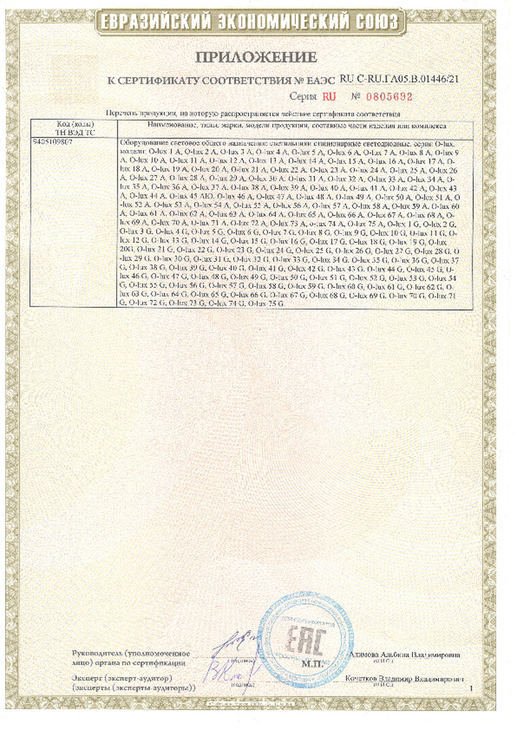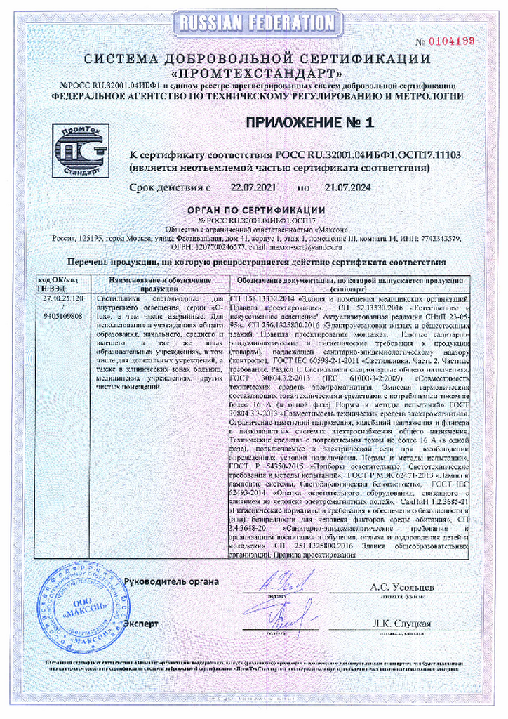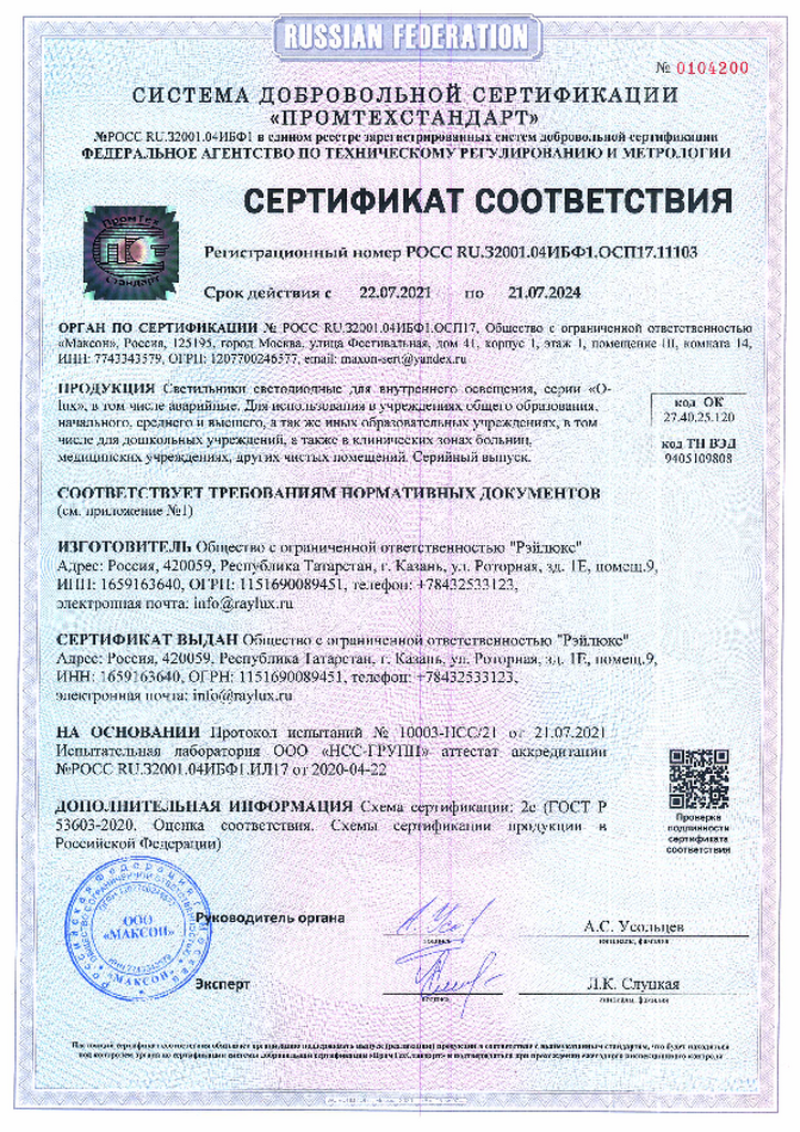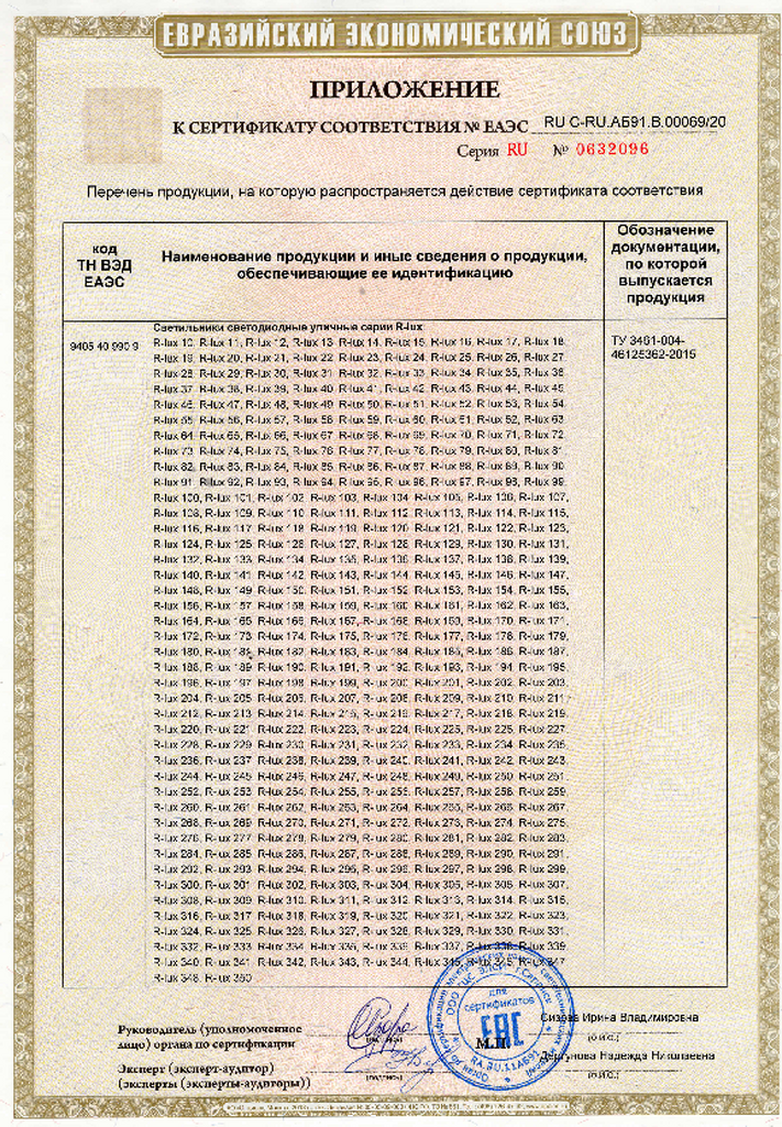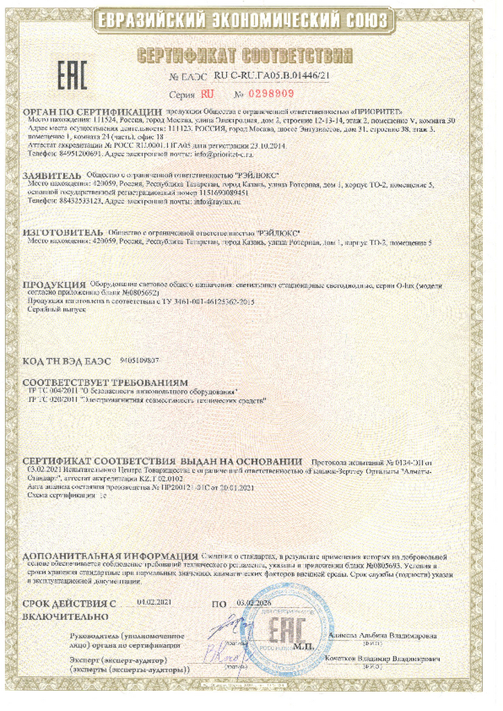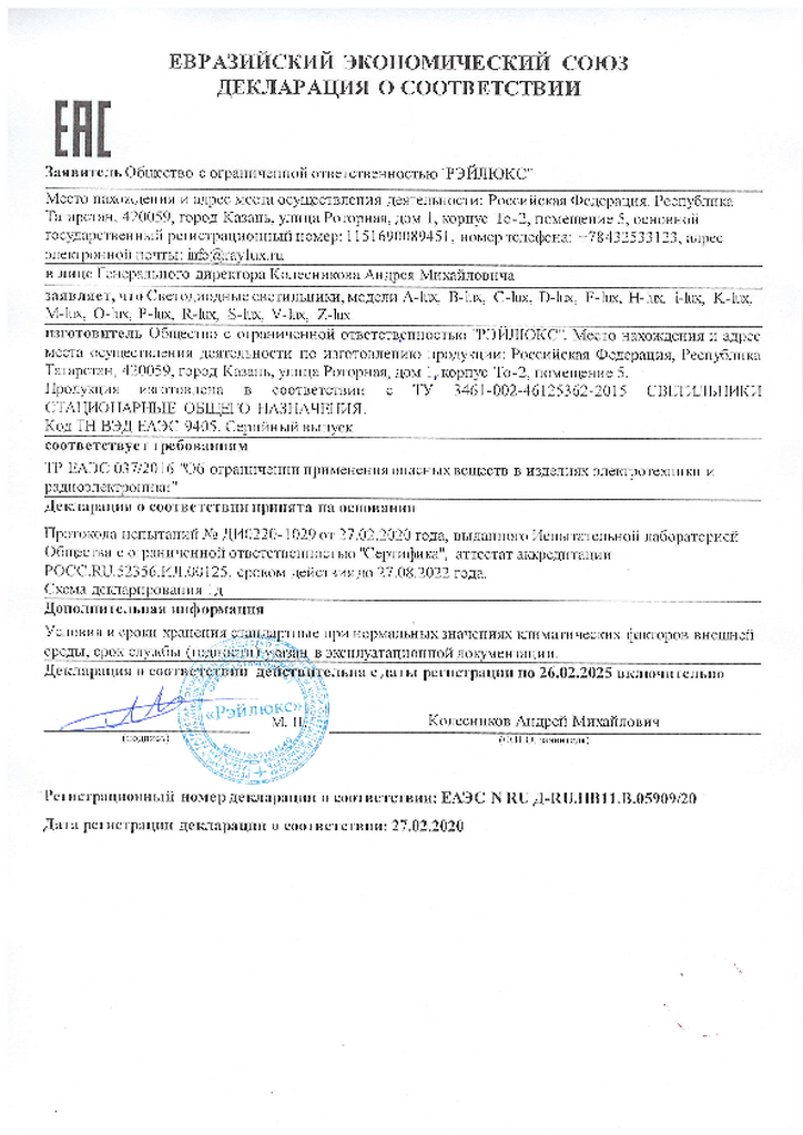 Декларация соответствия Таможенного союза S-lux, H-lux